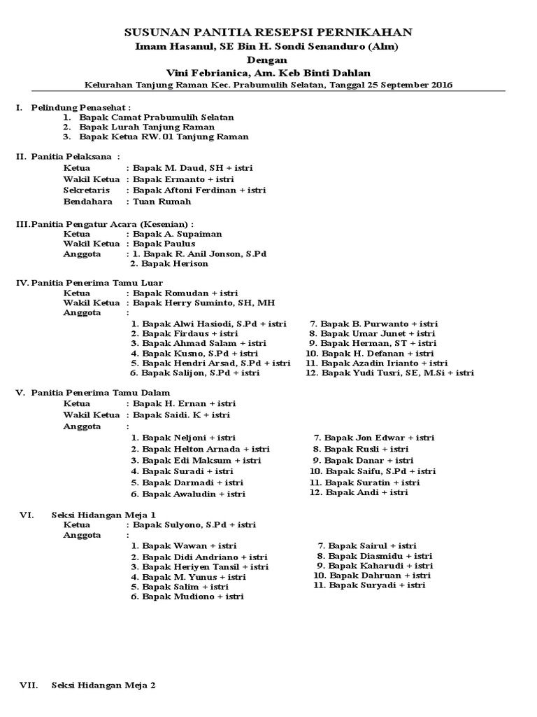 Contoh Susunan Panitia Resepsi Pernikahan - IMAGESEE